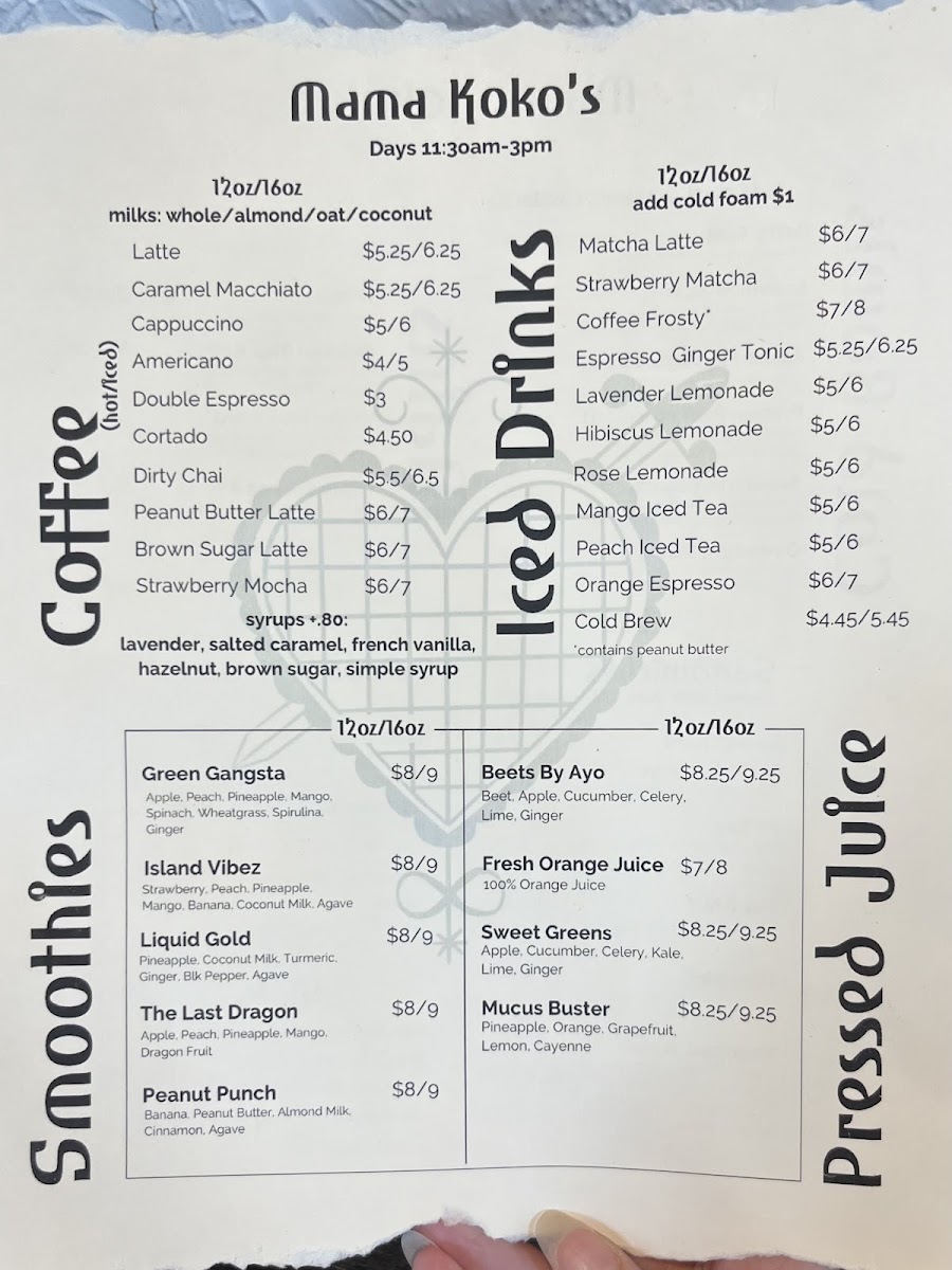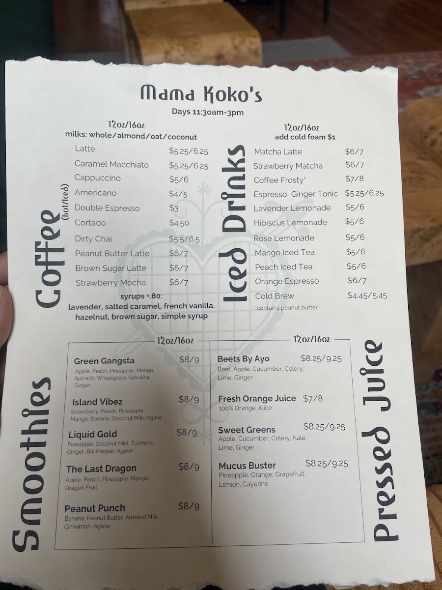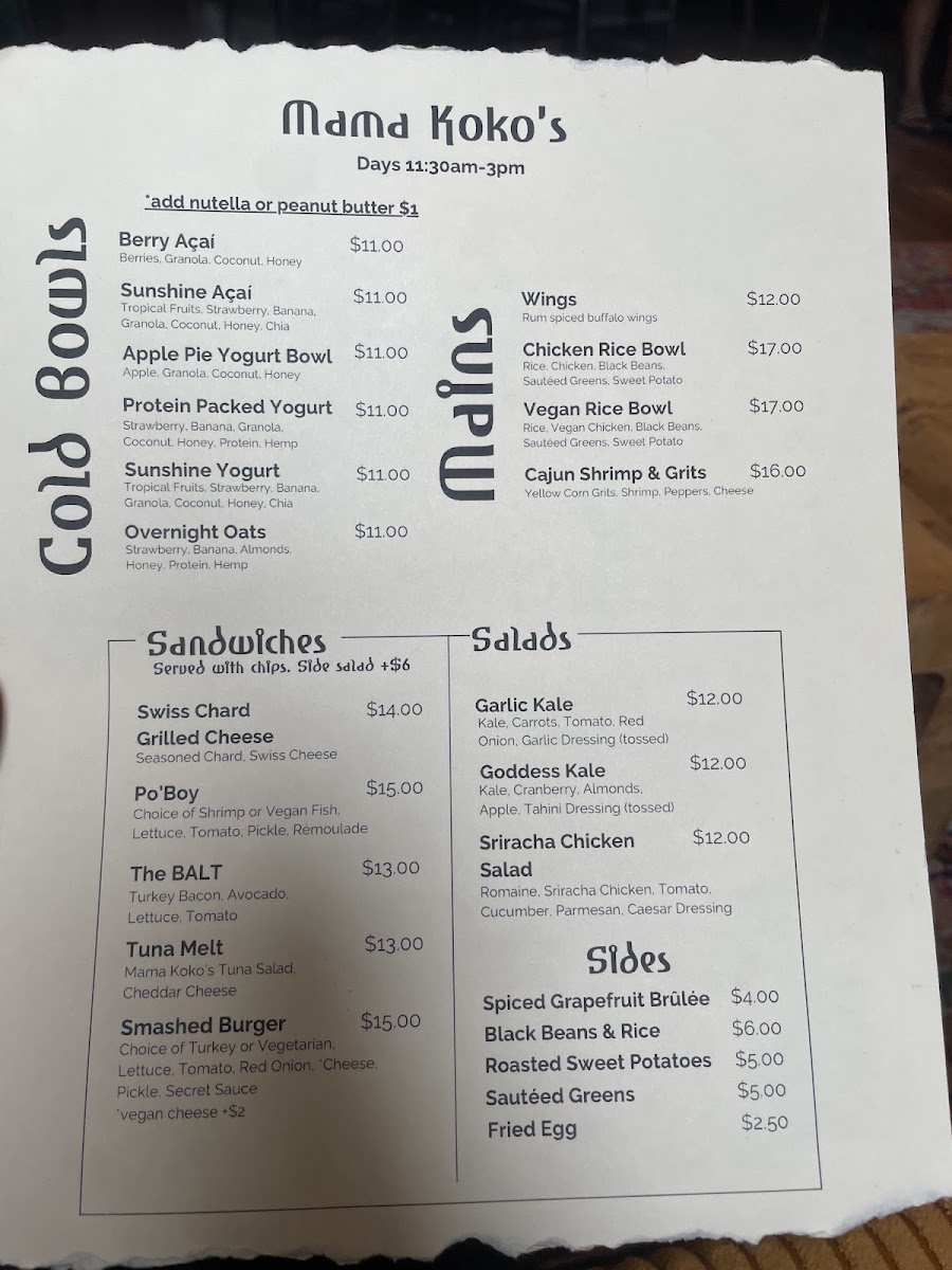 Mama Koko's Menu